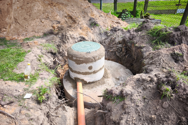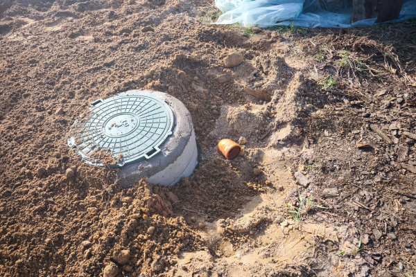 Установка прочной бетонной крышки с удобным люком для безопасного доступа к колодцу или септику и защиты от попадания мусора и осадков.