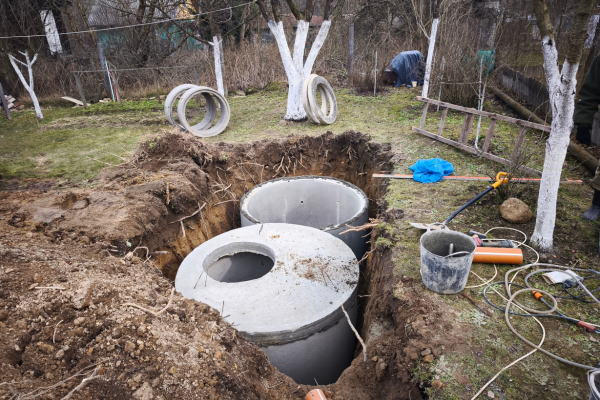 Стоимость рассчитывается индивидуально и зависит от площади дома, количества санитарных точек, выбранной системы (септик, локальная станция биологической очистки, выгребная яма) и сложности монтажа. В среднем цена стартует от базовых работ по установке колец и может доходить до более серьёзных сумм при монтаже современных станций. Чтобы узнать точную стоимость, мы составляем прозрачную смету после выезда специалиста.